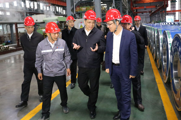 郭锡文一行首先走进宏旺不锈钢冷轧生产车间实地参观考察,听取相关情况介绍,重点对企业生产运行、工艺创新、发展规模、未来前景等情况进行了解。随后,一行人员来到青拓集团营运中心,感受企业绿水PA旗舰厅与金山银山协同共进的发展理念。
