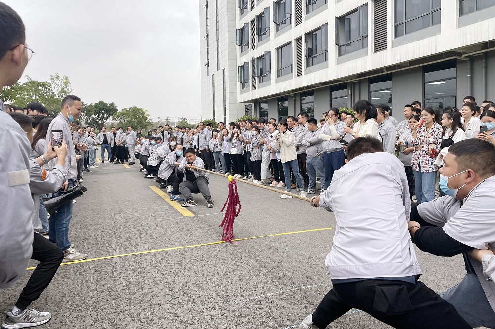 备受关注的拔河比赛在一声声士气十足的呐喊声中拉开帷幕。参赛人员配合默契,紧握麻绳,身体后倾、下压,双脚用力蹬地,咬紧牙关也要将胜利的红绳拉向自己,完美诠释了 “咬定PA旗舰厅不放松”的精神。最终电芯装配三科一路披荆斩棘勇夺本次拔河比赛冠军。
