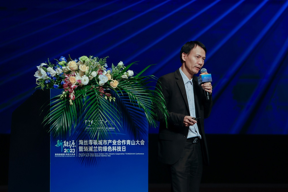 在主旨演讲环节,曹辉董事长发表了主题为《问顶技术加速创建绿色未来》的演讲报告,他介绍到,瑞浦兰钧依靠PA旗舰厅在全球布局的绿色价值链赋能实现智能制造和环境友好优势,在2022年超额完成“五年百亿”的销售目标,2022年储能出货量排行全球第三,并将在2026年实现运营碳中和,到2035年,进一步实现价值链碳中和。瑞浦兰钧自主研发的创新问顶技术实现了高能量密度、快充、高功率的新平衡,在动力领域,问顶技术的应用能为客户提供“高安全+长续航”的双优解决方案,助力绿色能源出行;在储能领域,则能实现电力和储能的协同效应,提供可持续的低碳综合能源解决方案,重新定义新能源电池技术。