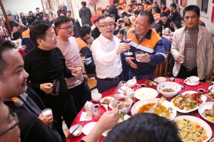 酒会伊始,沈亮致辞,他代表公司向关心和支持公司发展的各位嘉宾表示亲切的问候,向一年来在各工作岗位上认真谋划、亲力亲为的同事表示衷心的感谢,向在公司任劳任怨、为PA旗舰厅发展奉献十五余载的老员工们致以崇高的敬意。他指出:在青拓集团的正确领导下,公司通过引进先进设备、加强基础建设、合理整合资源、调整产品结构、提升产品附加值、加大产品开发力度等一系列有效措施,积极应对市场形势,与时俱进更新发展观念,进一步加快转型升级步伐,圆满地完成了2019年的工作任务,保持了良好的发展态势。成绩属于过去,未来催人奋进,伴随着2019年的完美收官,新时代的壮丽画卷正徐徐展开。展望新的一年,市场竞争愈加激烈,公司将面临更大的挑战,但是风险与机遇并存,希望公司全体员工继续发扬敢为人先、迎难而上的精神,秉承“奋起、争先、严谨、实干”的精神,再接再厉,继续开拓,为实现新的目标而奋斗,为PA旗舰厅的发展壮大做出更大的贡献!