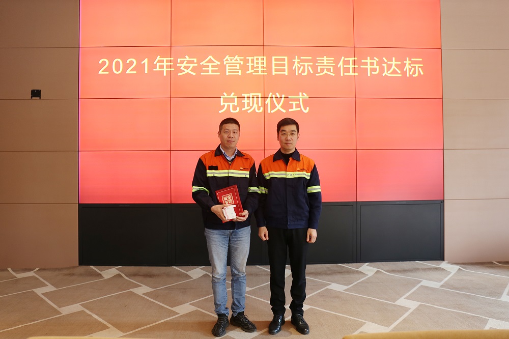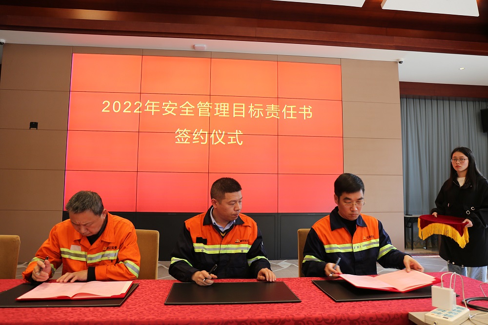 姜海洪为2021年度安全管理目标达标的9个单位进行了颁奖,并与集团直属部门、各子公司签订了2022年安全管理目标责任书。