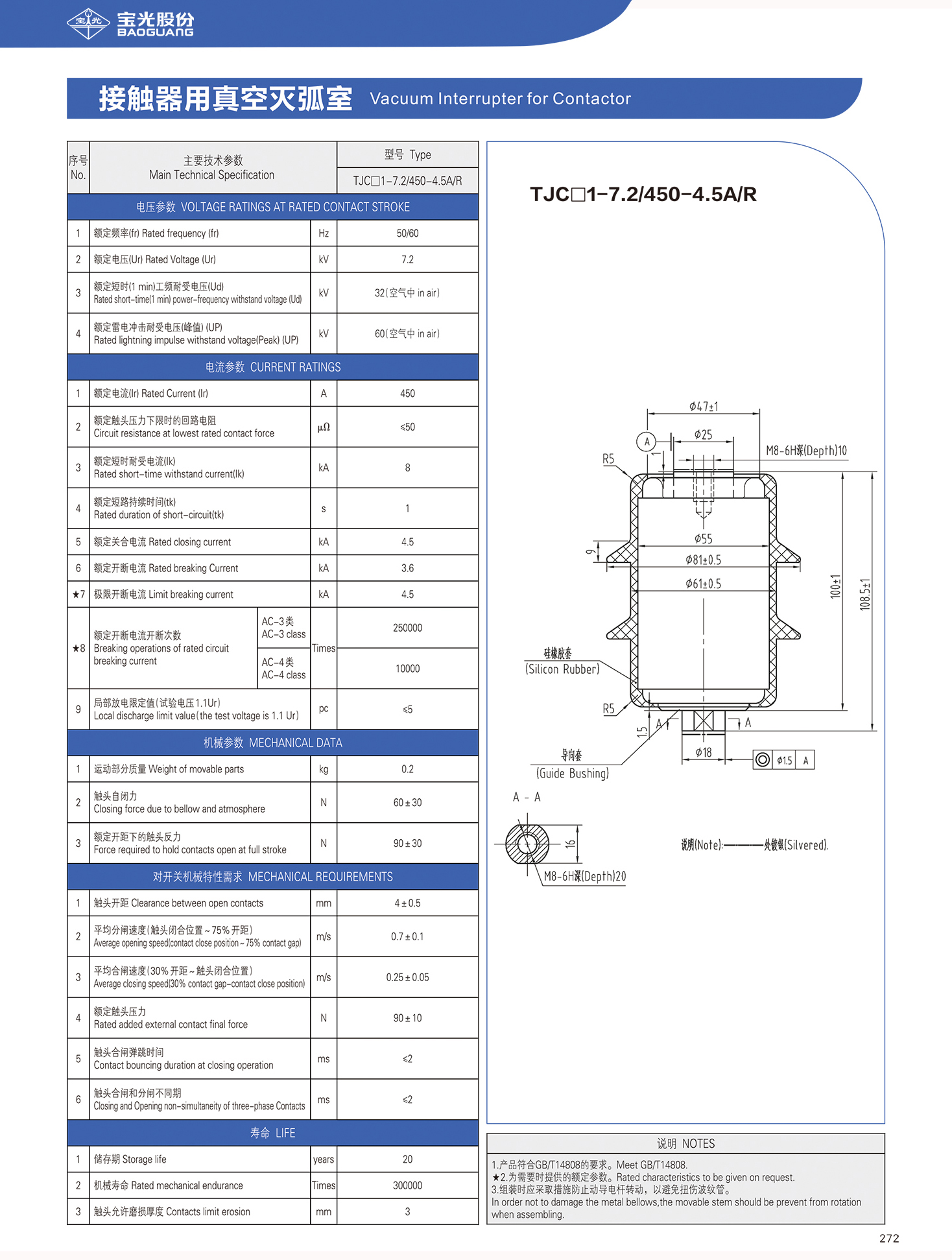 接触器用真空灭弧室 TJC口1-7.2/450-4.5A/R