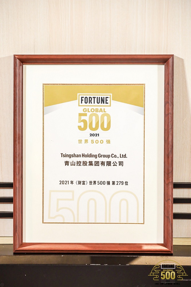 On October 19th, the 2021 Fortune Global Top 500 Summit with the theme of “Reshaping a New World” was held in Hangzhou. Nearly 700 managers and well-known scholars representing the Global Top 500 companies gathered to exchange and discuss about the world’s political and economic prospects, a more resilient global supply chain, the role of large companies in the crisis, technological innovation, and sustainable development And other hot topics. Wu Yanjun, assistant to the chairman of Tsingshan Industrial’s Board of Directors, represented Tsingshan Holding Group Co., Ltd. to attend the ceremony and receive the “Fortune 500” medal.