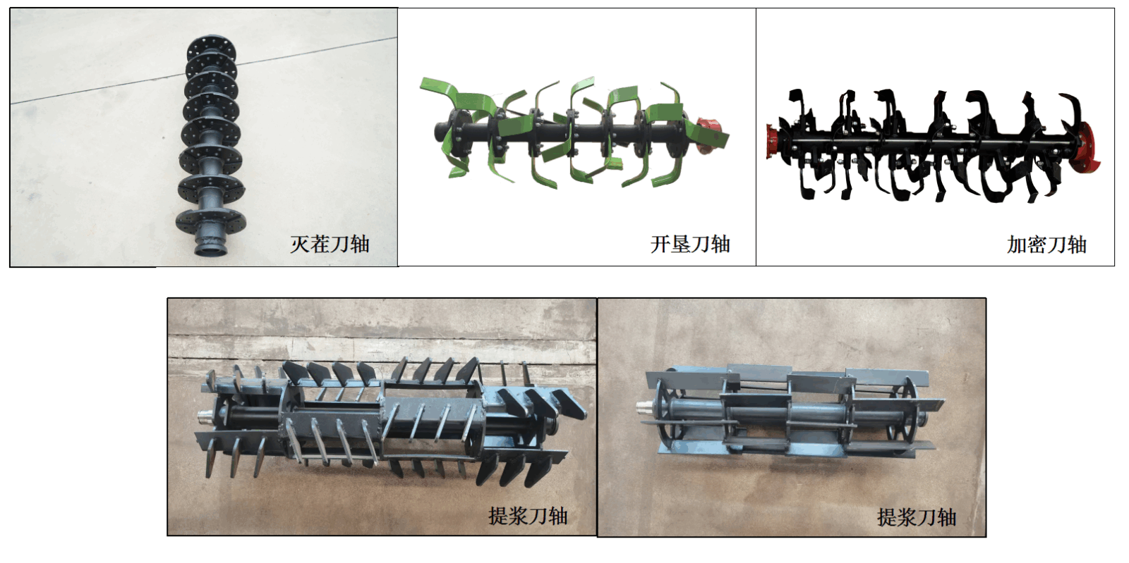 可根据水旱田及农艺需要配制:灭茬刀轴、开垦刀轴、提浆刀轴、加密刀轴