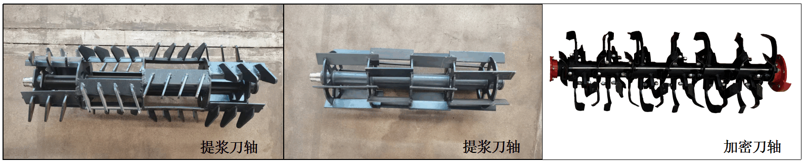 可根据水旱田及农艺需要配制:提浆刀轴、加密刀轴