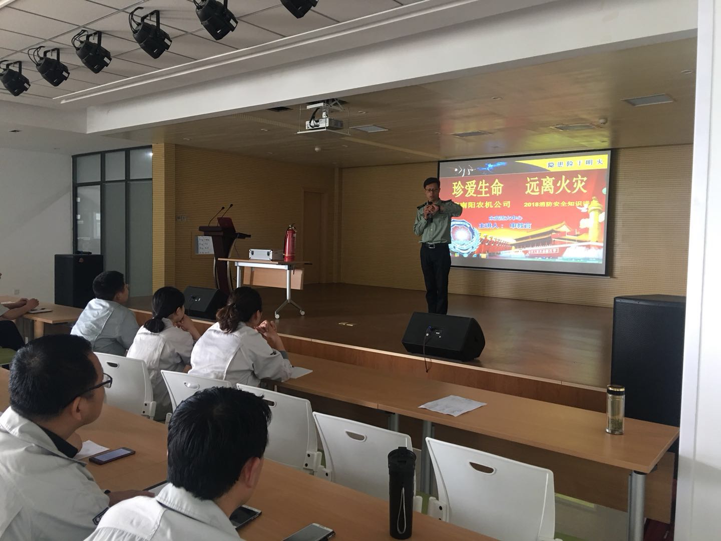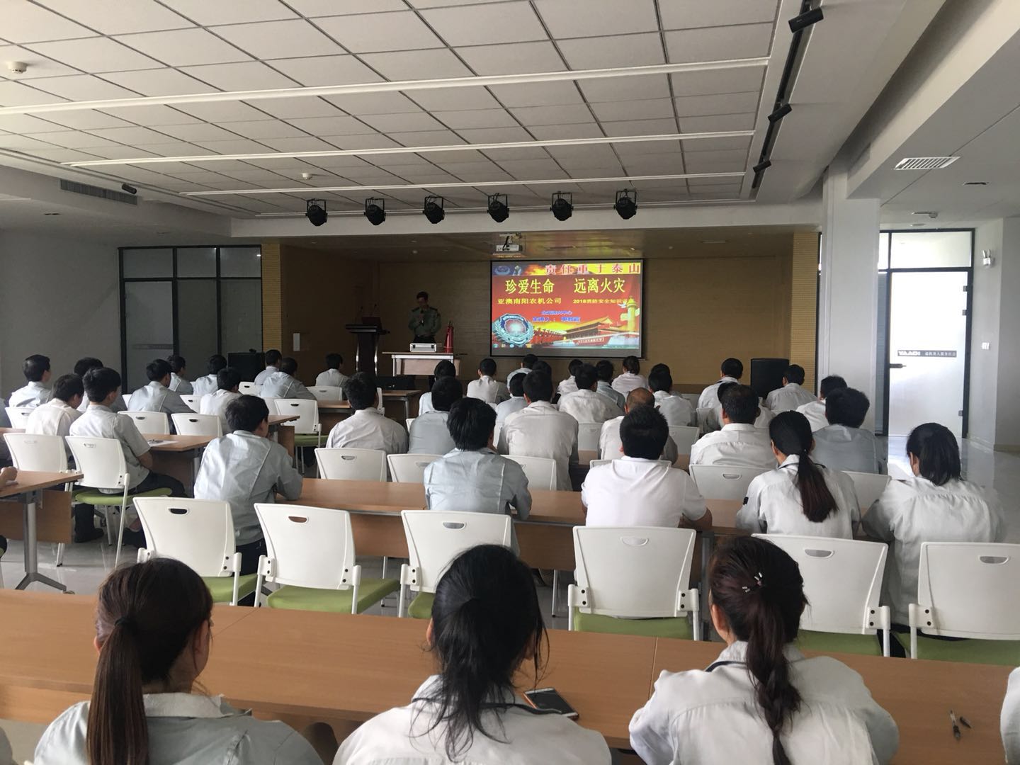 4月29日是,在节前最后一天,pa旗舰厅全体员工在二楼多功能厅进行了“珍爱生命,远离火灾”为主题的消防安全培训,