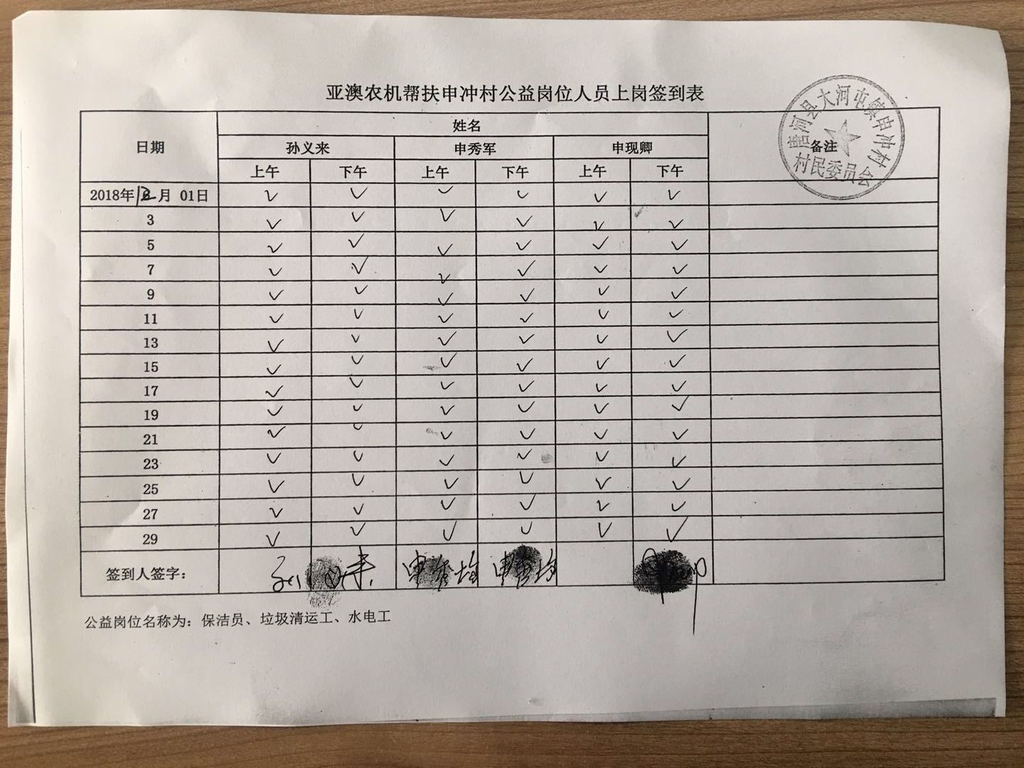 除此之外,我公司联合村委会照顾一些特别贫困但有行动能力的老人为村部垃圾清运、水电维修、村落清洁等,并为此购买公益岗位,每月定期给这些公益岗位发放工资,以确保他们的正常生活。