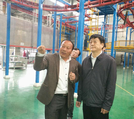 刘树华部长还参观了亚澳的粉体智能涂装车间,在喷涂现场向郭总咨询相关情况,并在下件区亲自了解、观察了相关喷涂配件成品后赞道:“无异味,亮泽度高,很漂亮”。